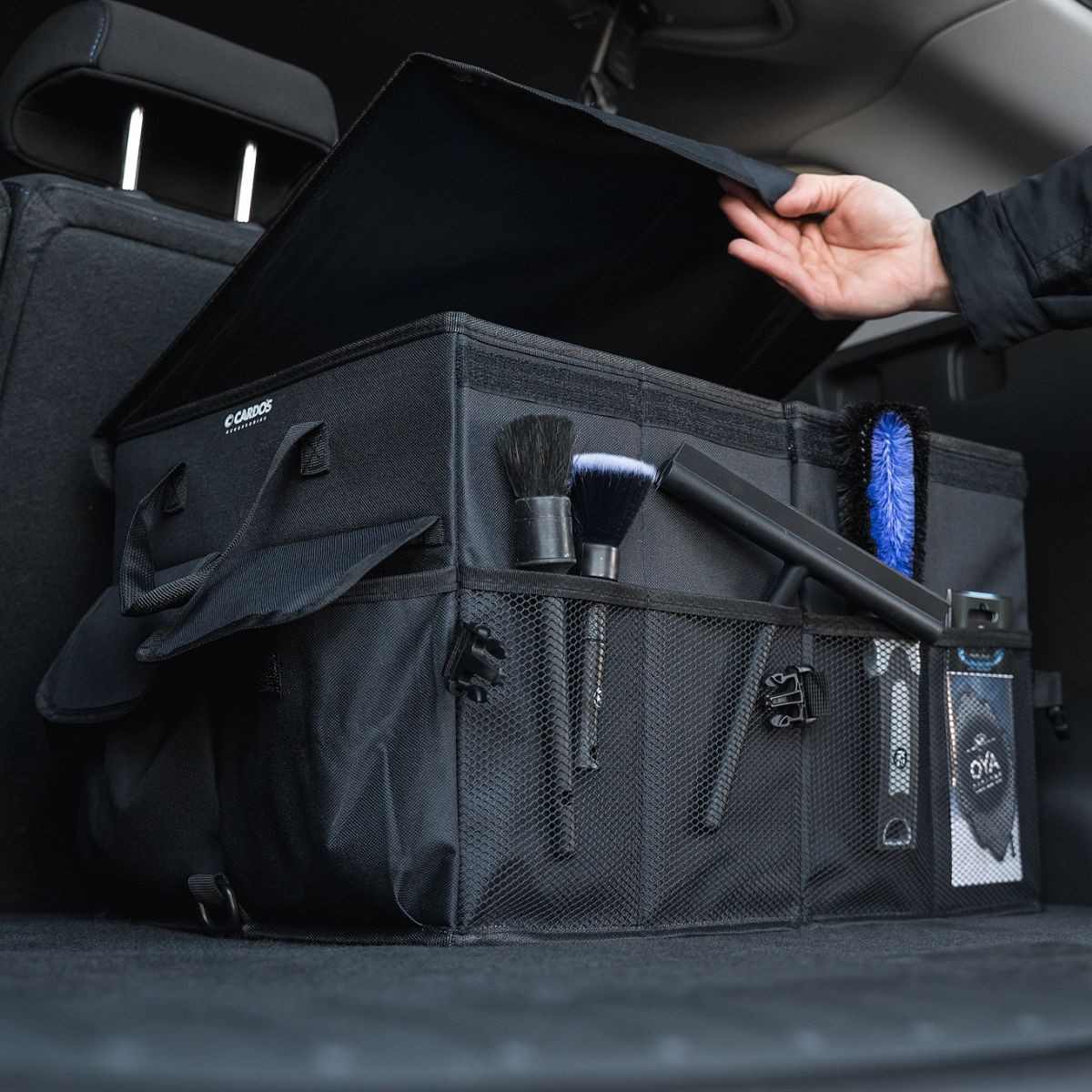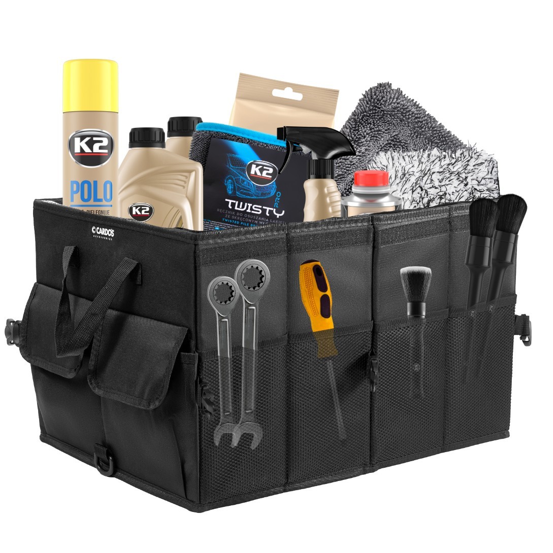 Bałagan w bagażniku to już przeszłość! Organizer XXL CARDOS pomoże Ci uporządkować akcesoria samochodowe, zakupy, narzędzia czy środki czystości. Dzięki niemu wszystko ma swoje miejsce, a Ty możesz cieszyć się komfortową i bezpieczną jazdą – bez obaw o porozrzucane przedmioty podczas gwałtownych manewrów.