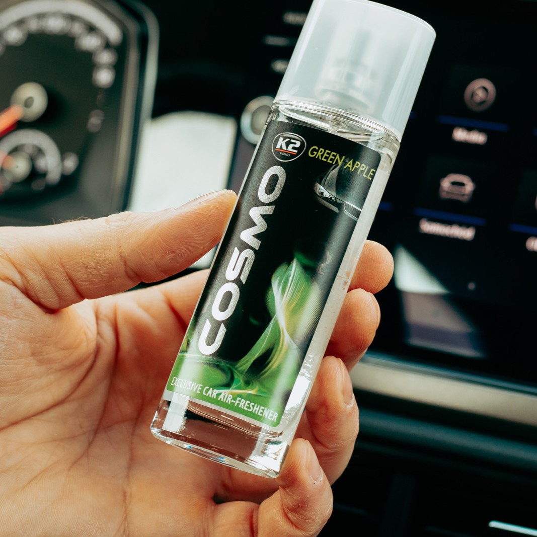 Subtelna kompozycja odświeżaczy K2 COSMO neutralizuje wszelkie niepożądane zapachy. Sposób użycia K2 COSMO pozwala na bezpośrednią aplikację zapachu, przez co możemy nadać wnętrzu niepowtarzalny charakter o wybranej intensywności. Dzięki silnie skoncentrowanej formule K2 COSMO odświeży wnętrze Twojego auta zawsze wtedy, kiedy tego potrzebujesz. K2 COSMO najlepiej rozpylić na miejsca materiałowe, dywaniki samochodowe czy tapicerowane elementy, z których zapach będzie doskonale odparowywał.