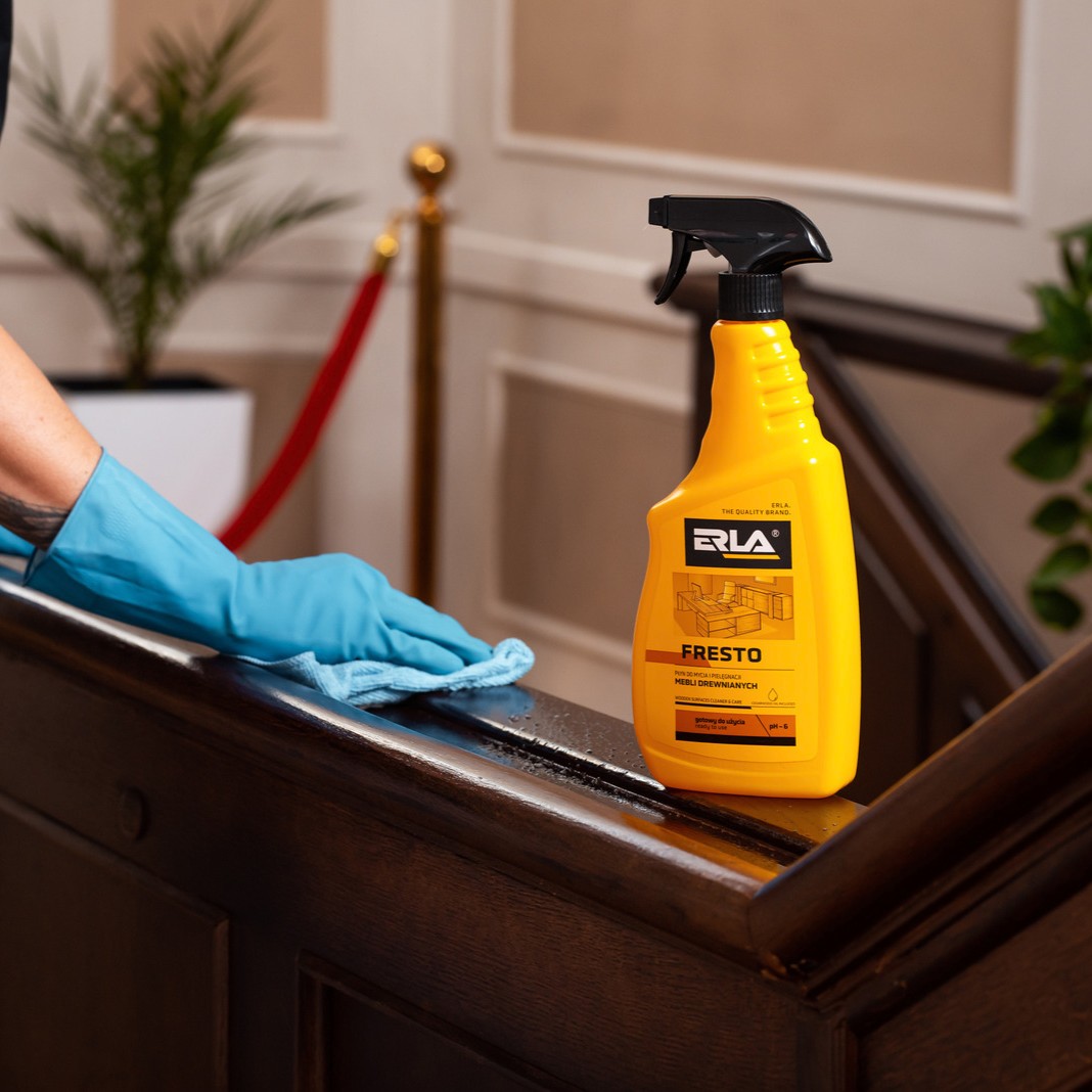 Erla Fresto to profesjonalny płyn do czyszczenia i pielęgnacji mebli drewnianych oraz drewnopodobnych zabezpieczonych lakierem. Gotowy do użycia, wyposażony w atomizer ułatwia i przyspiesza pracę. Dzięki zawartości olejków z drzewa cedrowego pielęgnuje, ożywia meble i dodatkowo przyjemnie pachnie. Nasyca kolor i podkreśla strukturę powierzchni, dzięki czemu wyglądają one dłużej jak nowe. Pomaga utrzymać piękny wygląd meblom lakierowanym, błyszczącym jak i tym matowym.