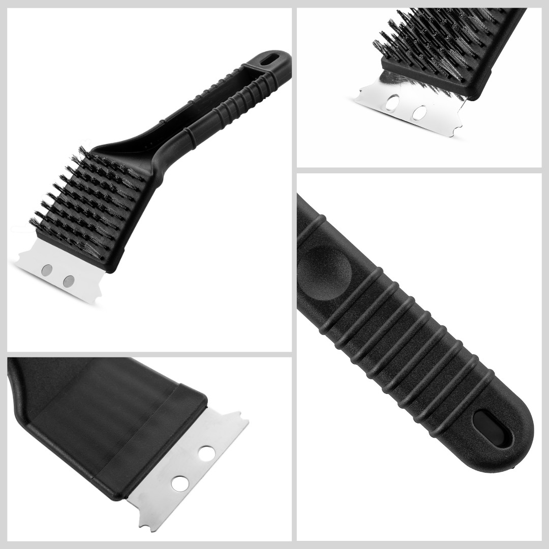 Szczotka do grilla ERLA GRIDA wyposażona jest w ostry metalowy skrobak oraz druciane włosie, dzięki czemu doskonale sprawdzi się w przypadku usuwania przypalonego tłuszczu oraz zapieczonych resztek jedzenia.