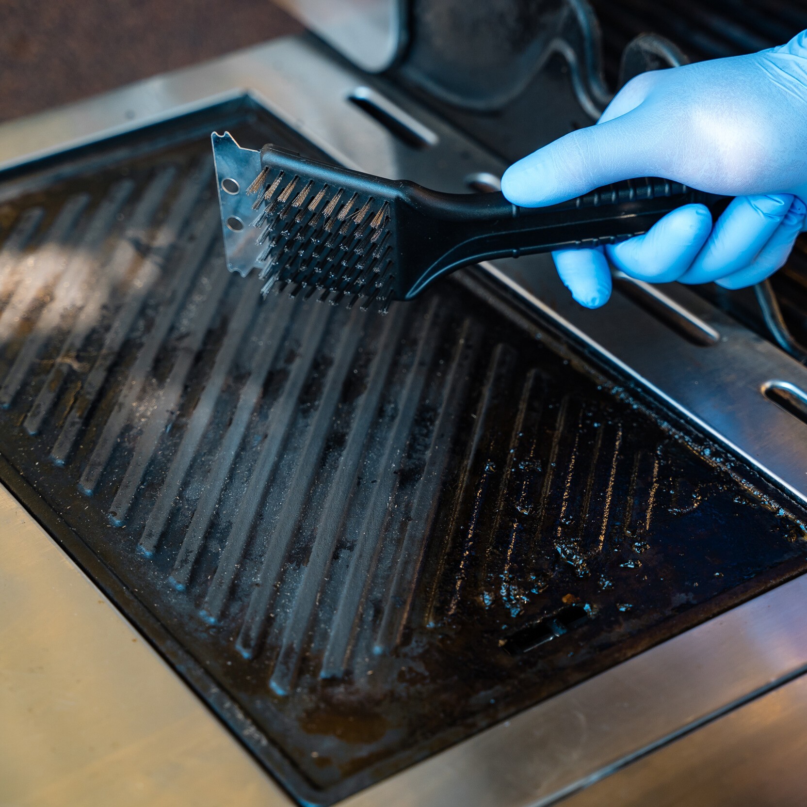 Szczotka ERLA GRIDA to niezastąpiony pomocnik każdego, kto ma styczność z trudnymi do usuwania zabrudzeniami w postaci przypalonego tłuszczu oraz resztek jedzenia.