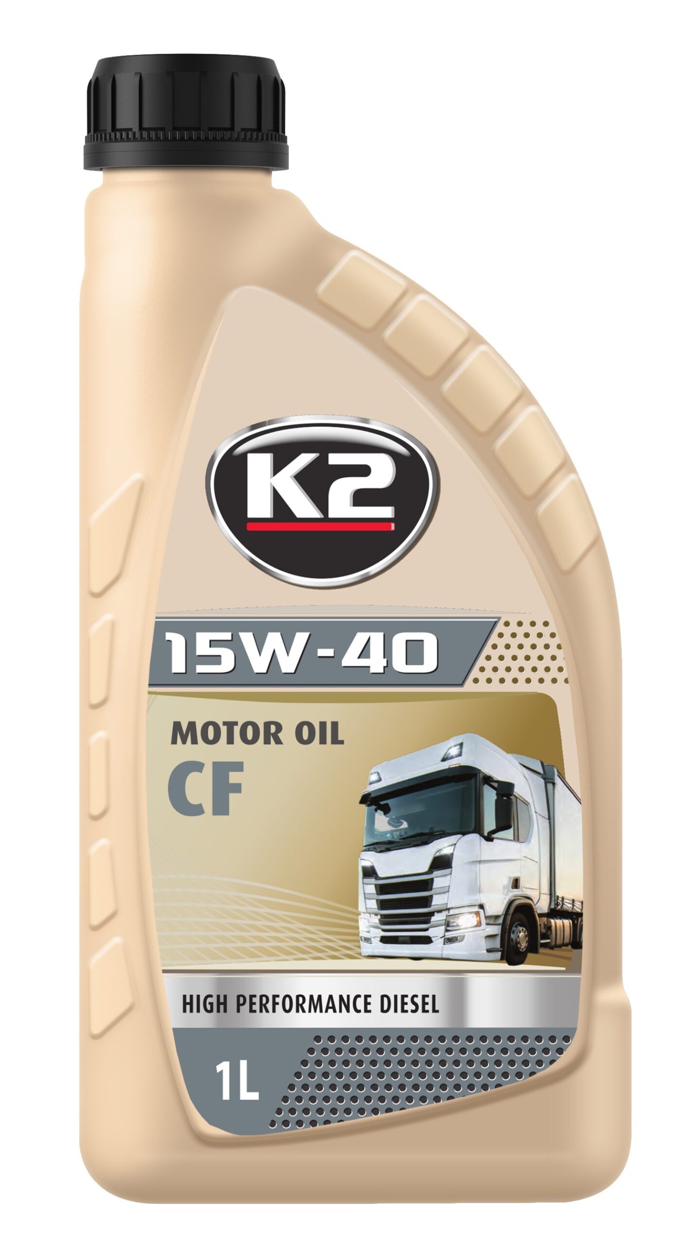 K2 15W-40 CF to wielosezonowy olej mineralny opracowany z myślą o silnikach diesla starszej generacji, zapewnia optymalne parametry pracy silnika. Dzięki swoim parametrom zapewnia pełną ochronę i doskonałe uszczelnia wyeksploatowanym i wysoko obciążonych silników samochodów ciężarowych, dostawczych, maszyn budowlanych rolniczych i autobusów. Ogranicza wycieki i zużycie oleju.