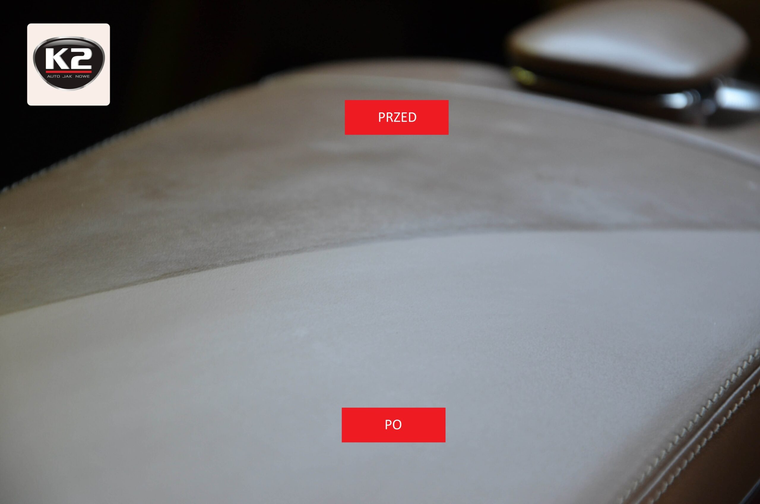 Wskazówka: Aby utrzymać skórzaną tapicerkę w optymalnej kondycji zaleca się jej regularnie czyszczenie i zabezpieczenie (raz na 3 miesiące) przy pomocy standardowego zestawu K2 Auron.