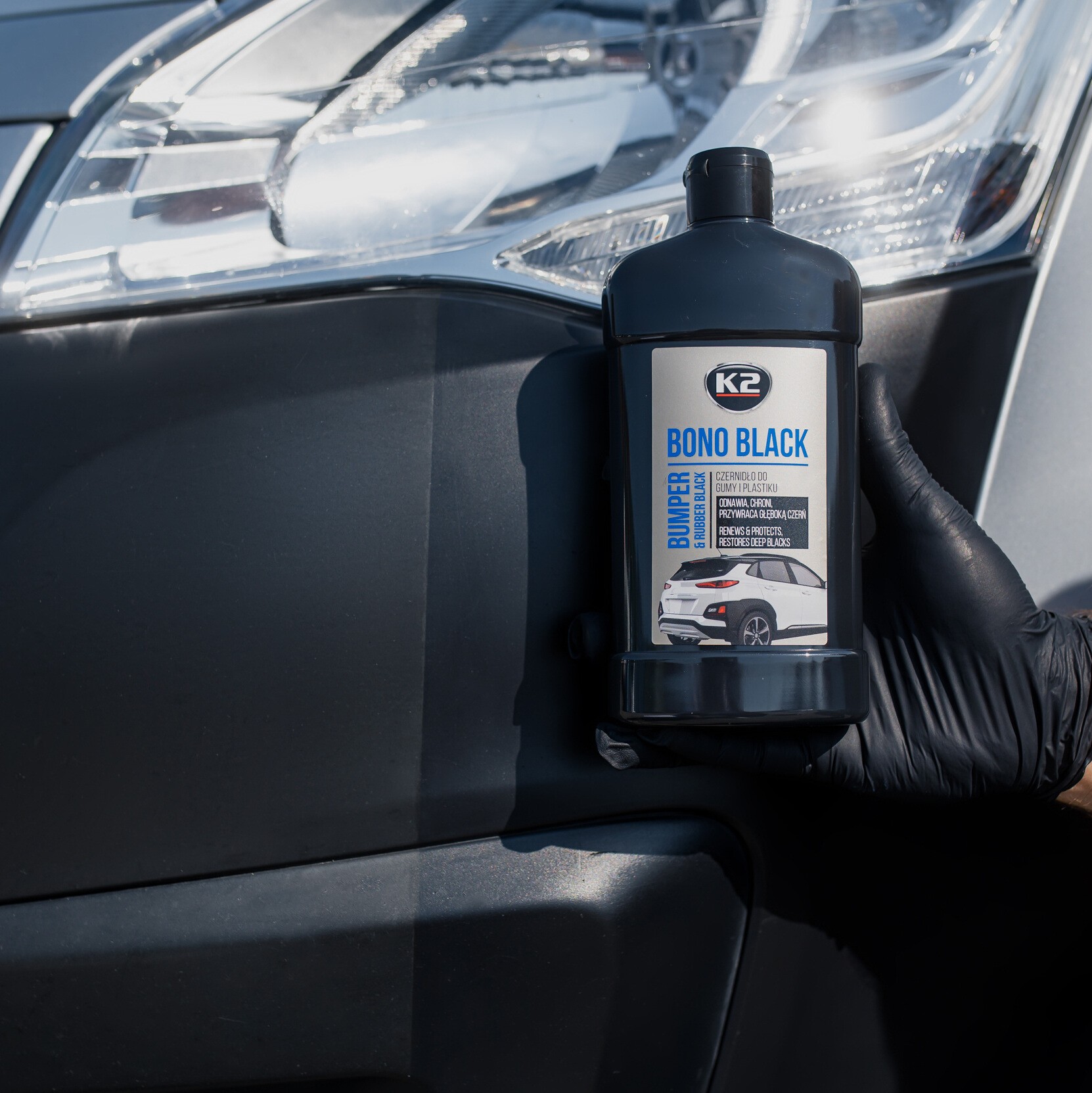 K2 BONO BLACK silnie przywiera do tworzyw i przywraca naturalny kolor dodatkowo podkreślając fakturę.