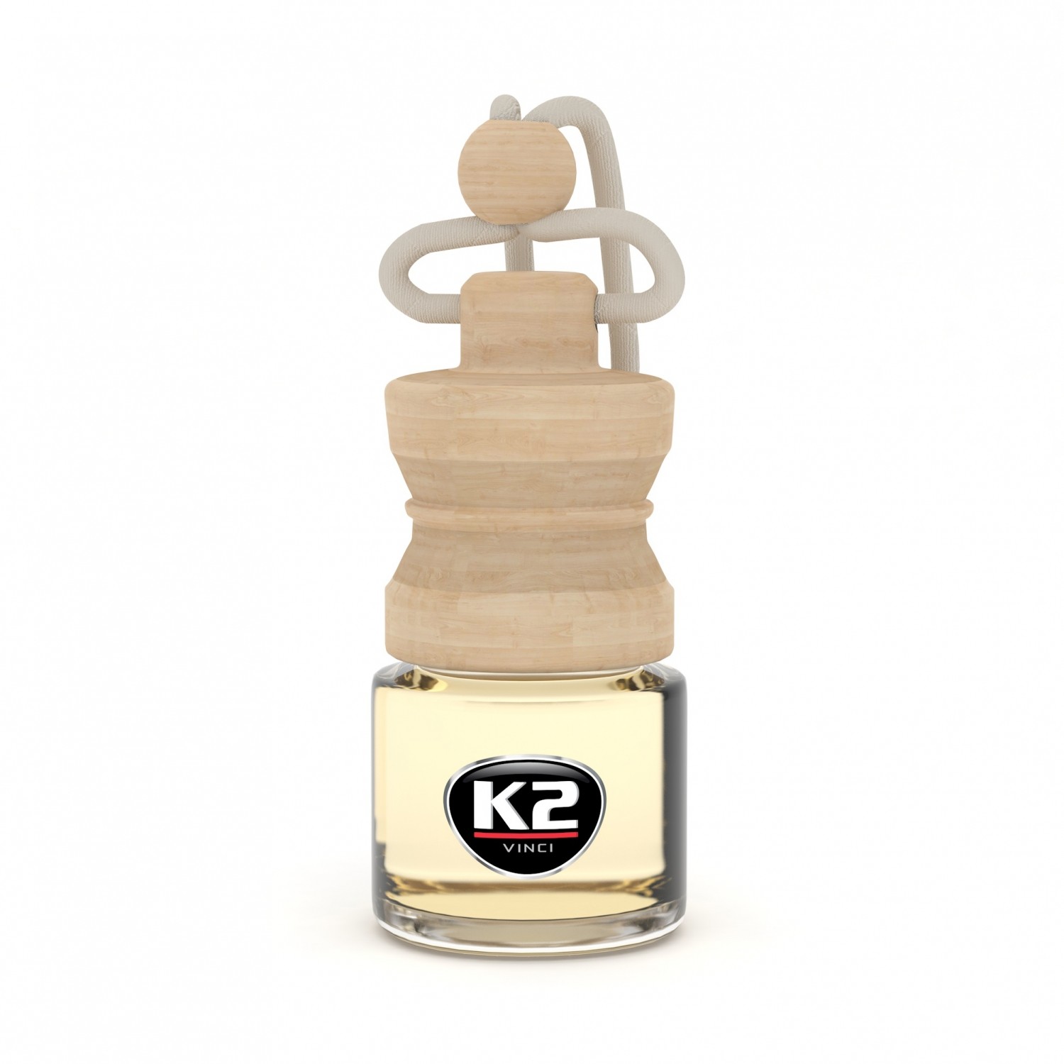 K2 Caro to odświeżacz powietrza zamknięty w eleganckiej, małej buteleczce z drewnianym korkiem.