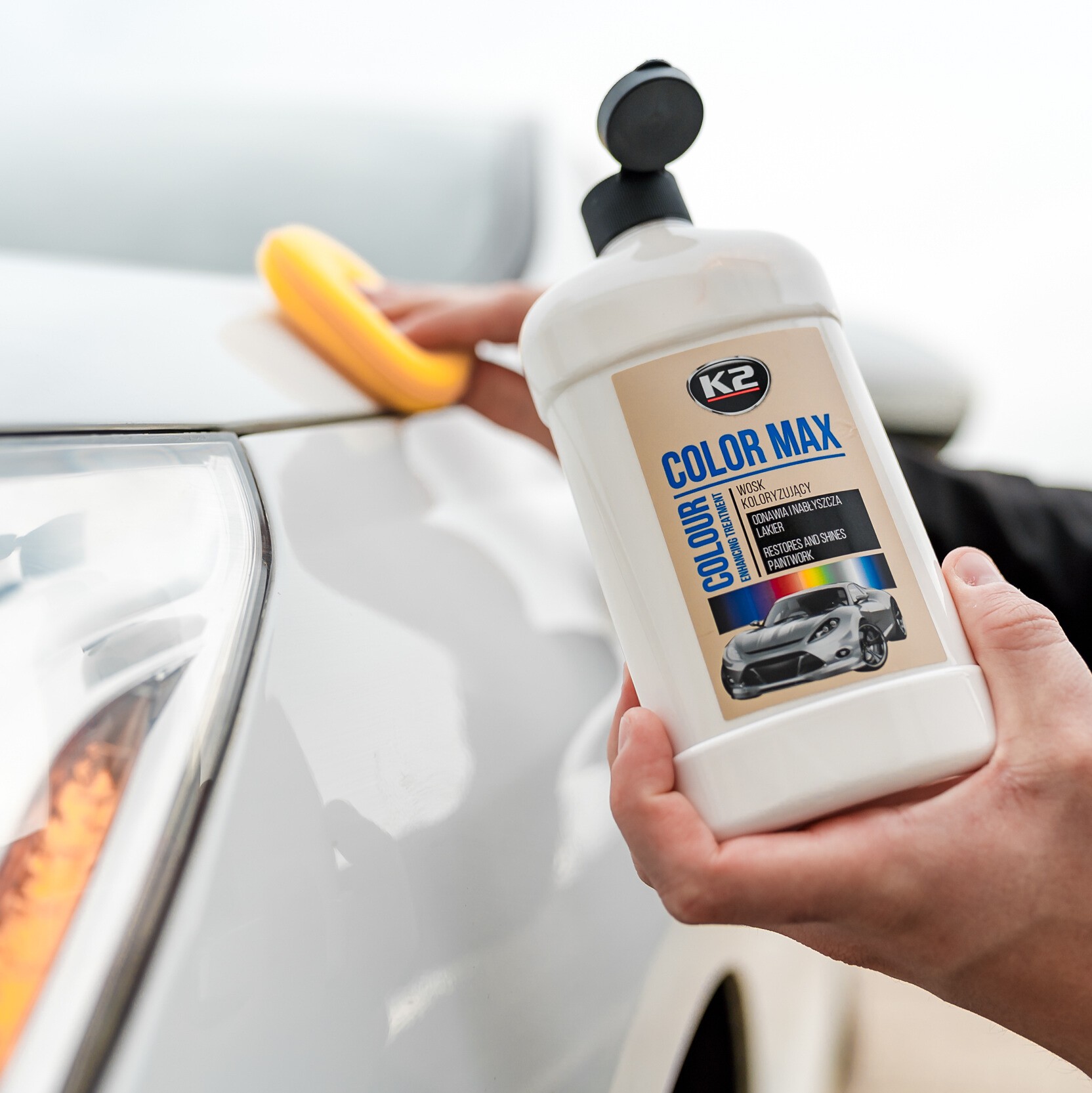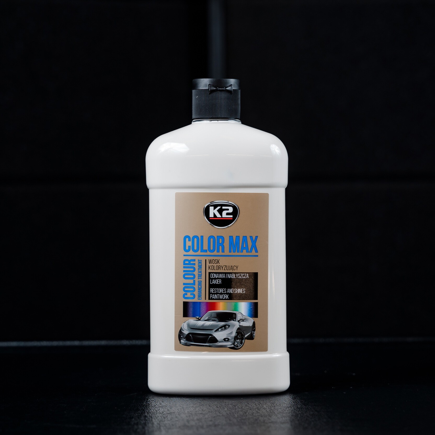 K2 Color Max – wosk koloryzujący dostępny w 9 popularnych kolorach. Nadaje się do wszystkich typów lakierów samochodowych, również metalizowanych. Doskonale ożywia kolor, a dzięki zawartości wosku Carnauba przywraca dawny połysk lakieru.