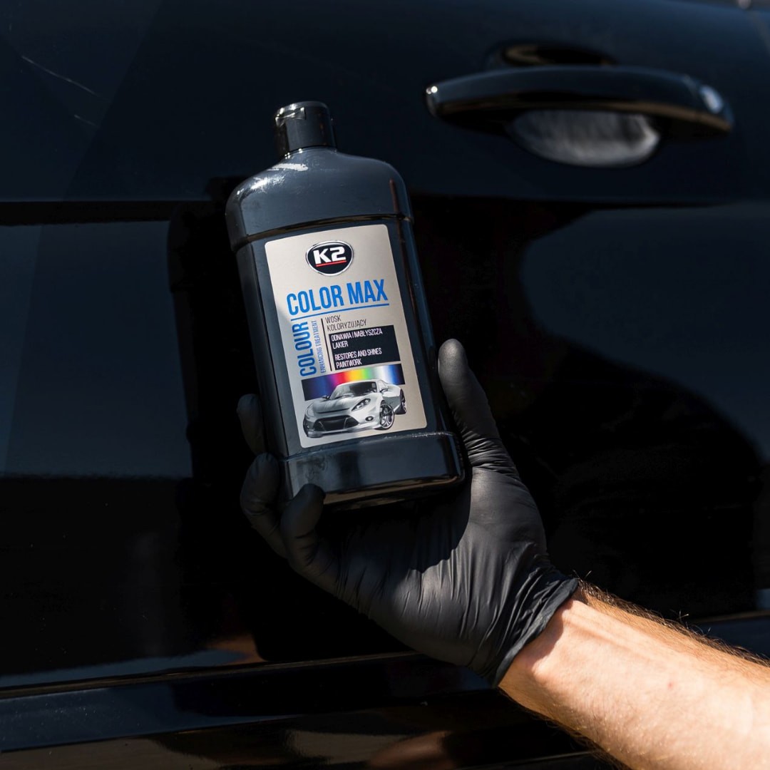 K2 Color Max – wosk koloryzujący dostępny w 9 popularnych kolorach. Nadaje się do wszystkich typów lakierów samochodowych, również metalizowanych. Doskonale ożywia kolor, a dzięki zawartości wosku Carnauba przywraca dawny połysk lakieru.