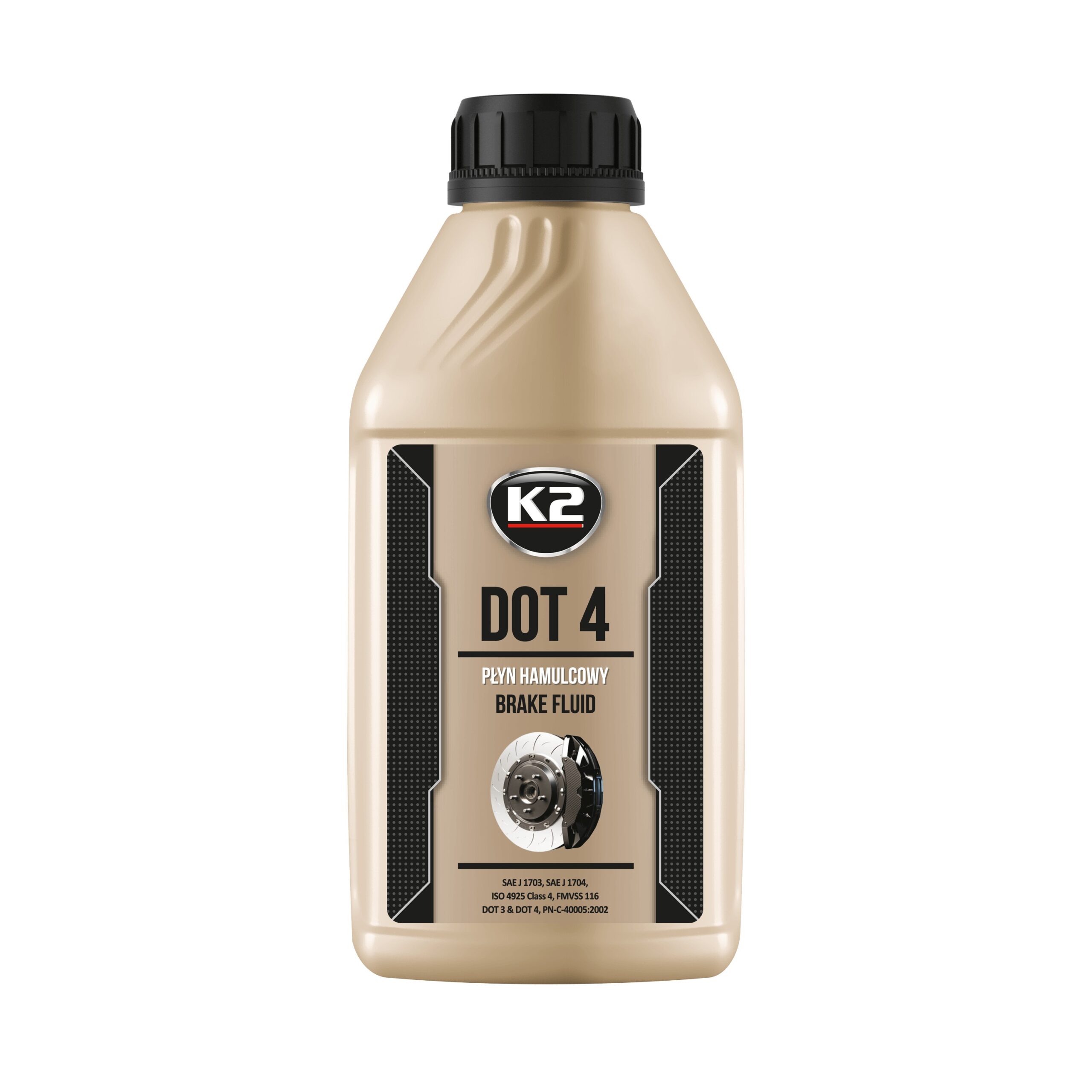 Płyn hamulcowy DOT 4 posiada doskonałe parametry reologiczne pozwalające na stosowanie w bardzo niskich temperaturach. Jest neutralny dla uszczelnień i stopów metali stosowanych w układzie hamulcowym oraz chroni go przed korozją. Płyn hamulcowy K2 DOT 4 posiada temperaturę wrzenia przekraczającą 230 st. C, dzięki czemu dłużej zachowuje on swoje właściwości. Produkt jest w pełni mieszalny z innymi płynami klasy DOT.