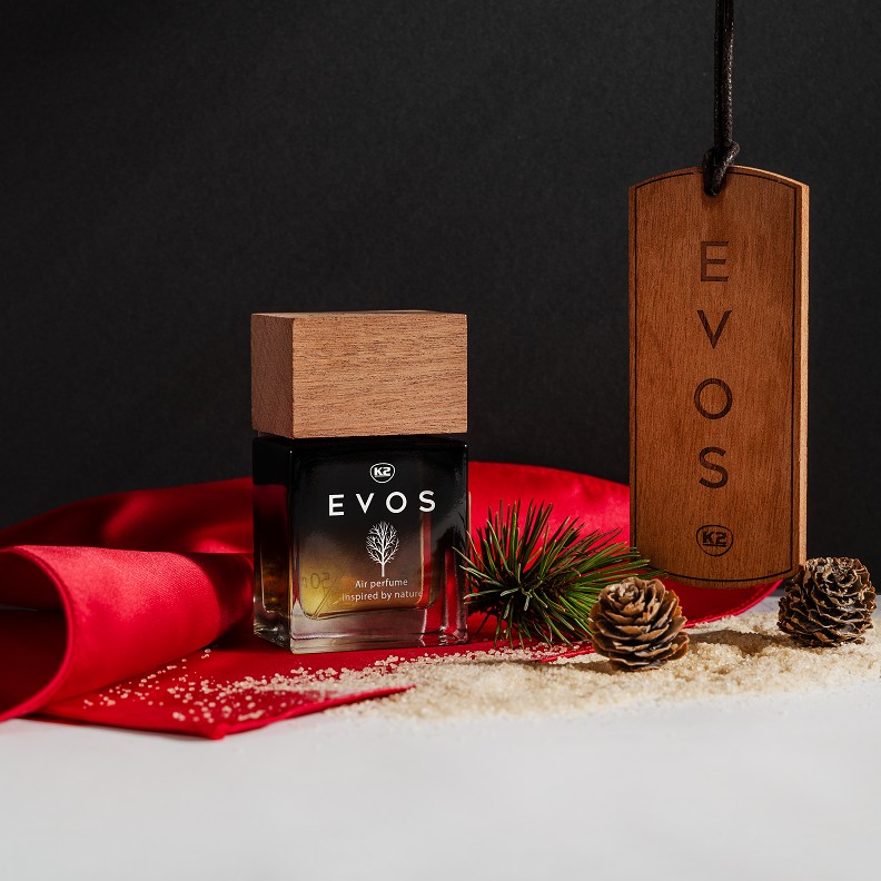Perfumy samochodowe EVOS są doskonałym sposobem na przedłużenie żywotności drewnianej zawieszki zapachowej K2 Evos. Spryskana nimi zawieszka ponownie napełnia się szlachetnym aromatem, który stopniowo uwalniany jest do wnętrza auta.