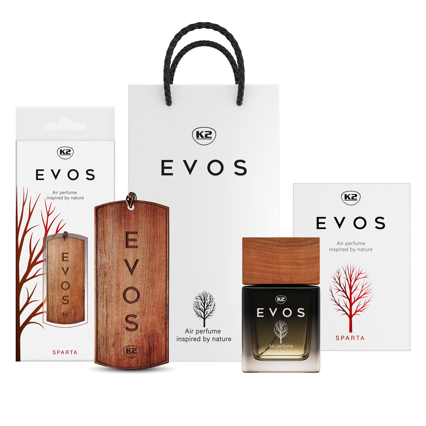 Perfumy do samochodu K2 EVOS to inspirowana naturą, niezwykła kompozycja wyjątkowych nut zapachowych, zaprojektowana z myślą o wnętrzach nowoczesnych aut.