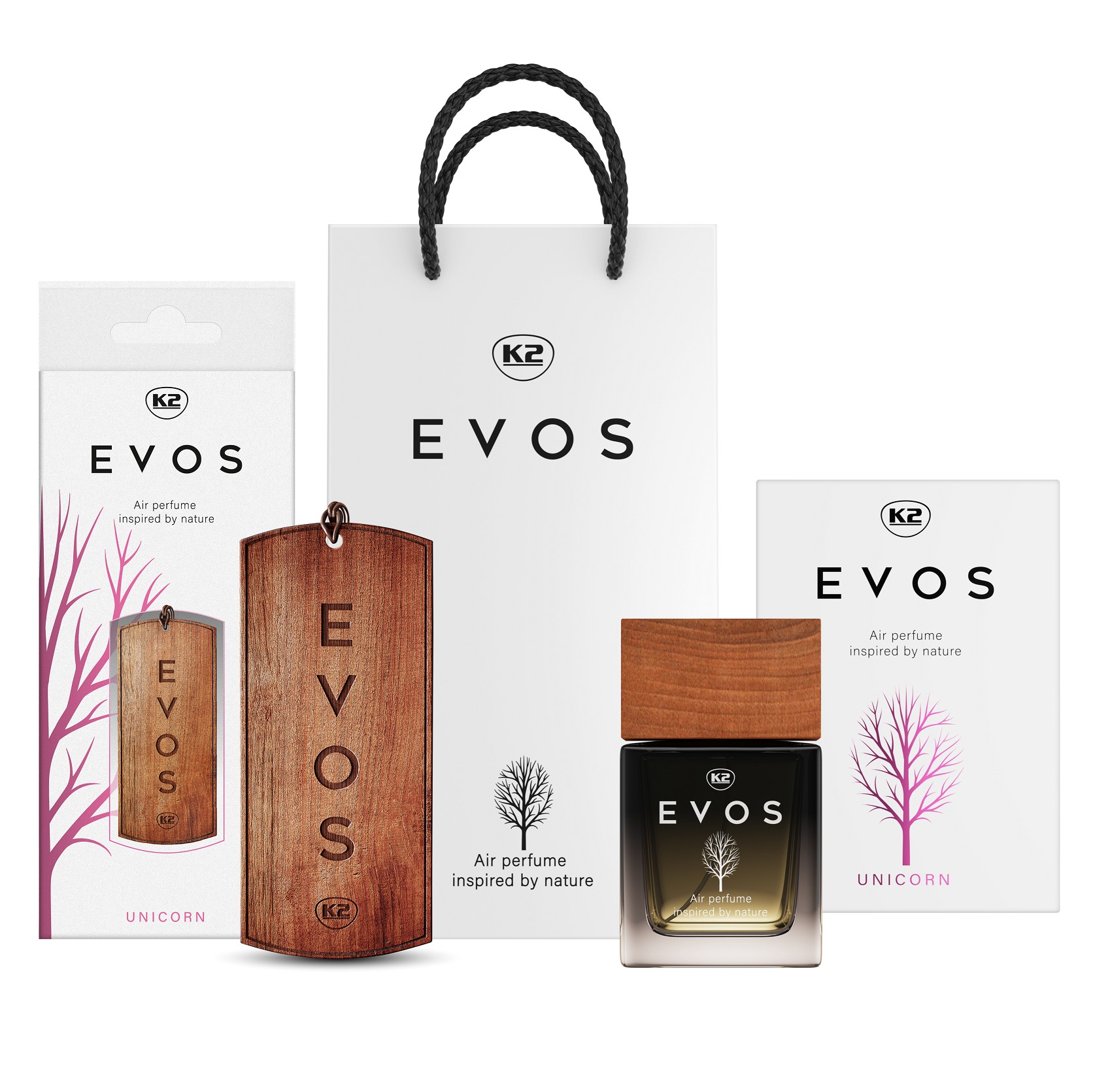Perfumy do samochodu K2 EVOS to inspirowana naturą, niezwykła kompozycja wyjątkowych nut zapachowych, zaprojektowana z myślą o wnętrzach nowoczesnych aut.