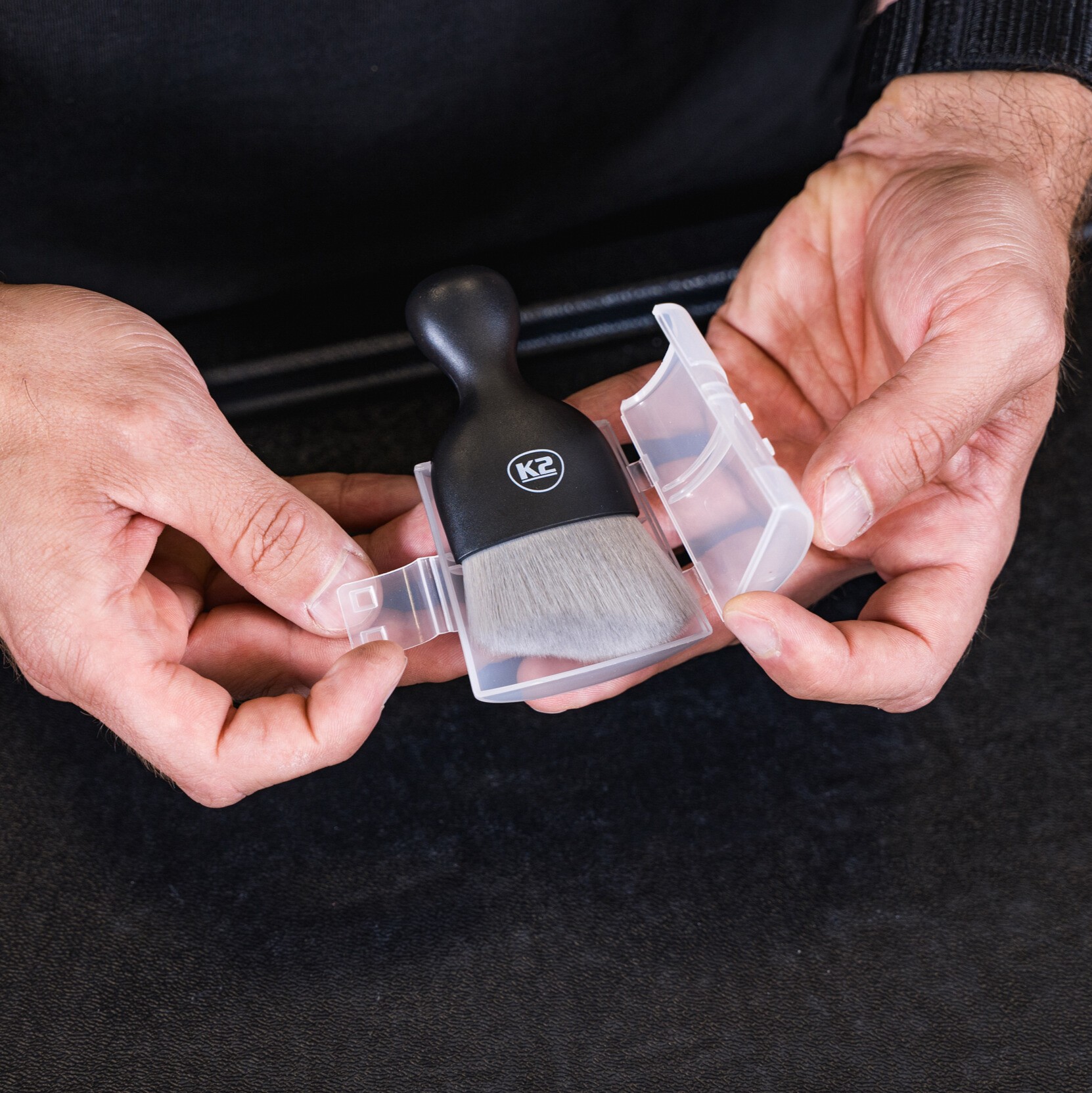 K2 FLATO PRO to profesjonalny pędzelek detailingowy stworzony z myślą o skutecznym, a zarazem bezpiecznym czyszczeniu nawet najbardziej wrażliwych powierzchni. Wyposażony w delikatne, aksamitne włosie o charakterystycznym cięciu, pozwala precyzyjnie usuwać kurz i brud z trudno dostępnych miejsc: nawiewów, emblematów, zakamarków wnętrza i detali karoserii. Kompaktowe rozmiary ułatwiają przechowywanie, a ergonomiczny kształt zapewnia wygodny chwyt podczas pracy.