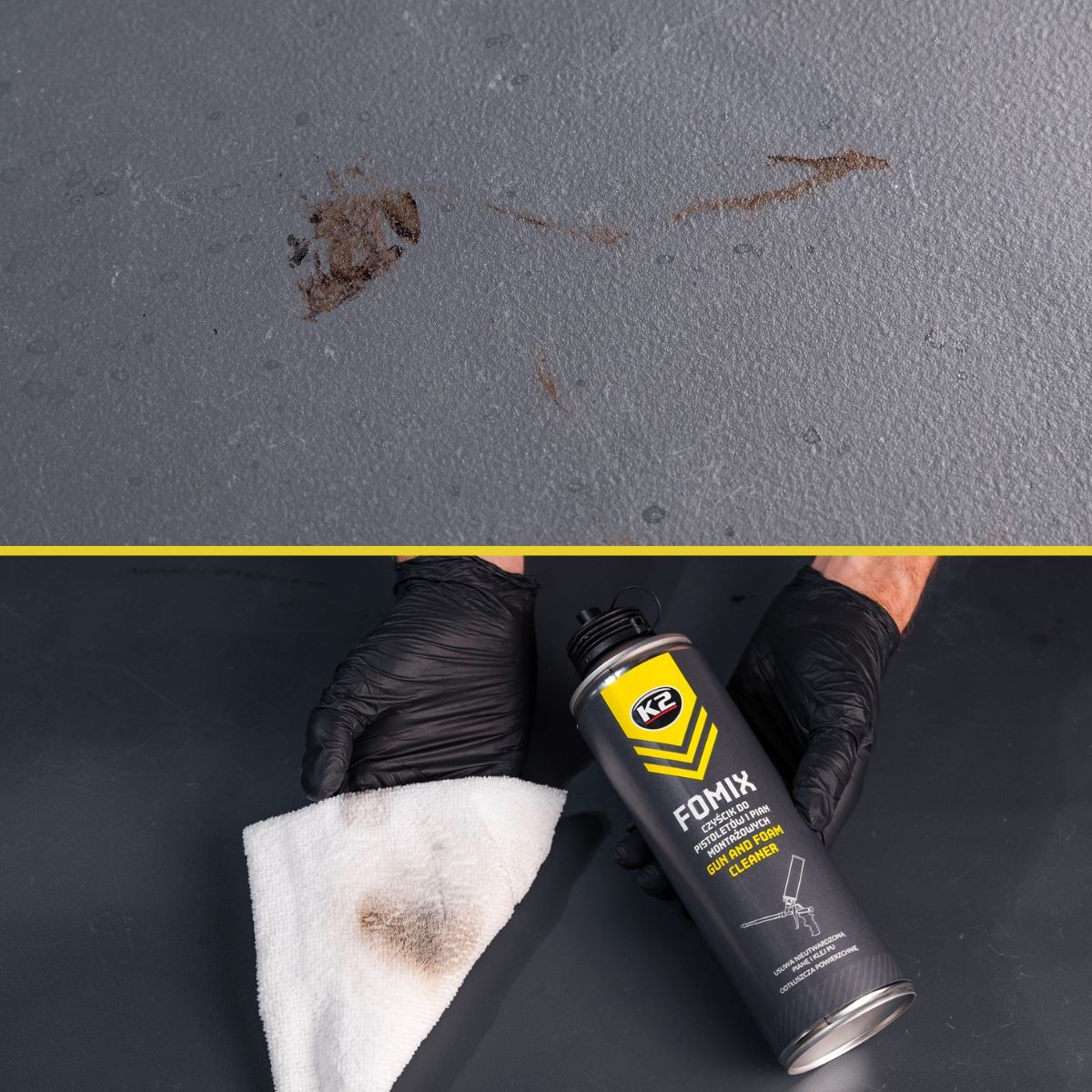 Środek świetnie nadaje się do czyszczenia pistoletów, zaworów, pojemników, narzędzi oraz jako odtłuszczacz powierzchni przed aplikacją nowych warstw piany, kleju, silikonu czy uszczelniacza. K2 FOMIX to także skuteczna odpowiedź na pytanie, jak usunąć świeżą pianę poliuretanową – jego formuła rozpuszcza zabrudzenia, ułatwiając ich usunięcie.