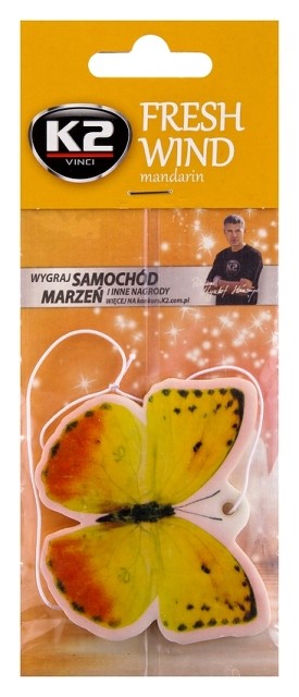 K2 Fresh Wind to celulozowy odświeżacz powietrza w formie zawieszki o kształcie barwnego motyla.