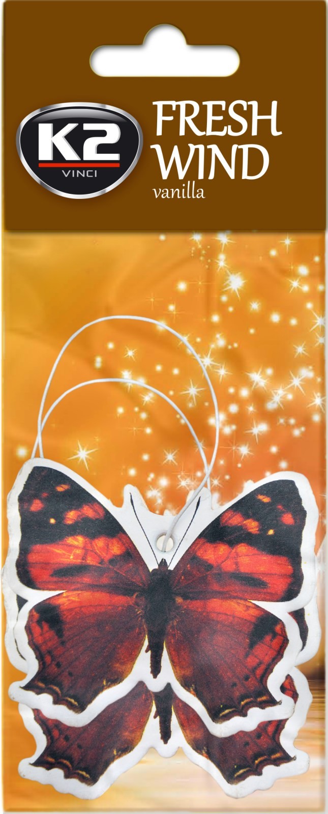 K2 Fresh Wind Duopack to celulozowy odświeżacz powietrza w formie zawieszki o kształcie barwnego motyla.