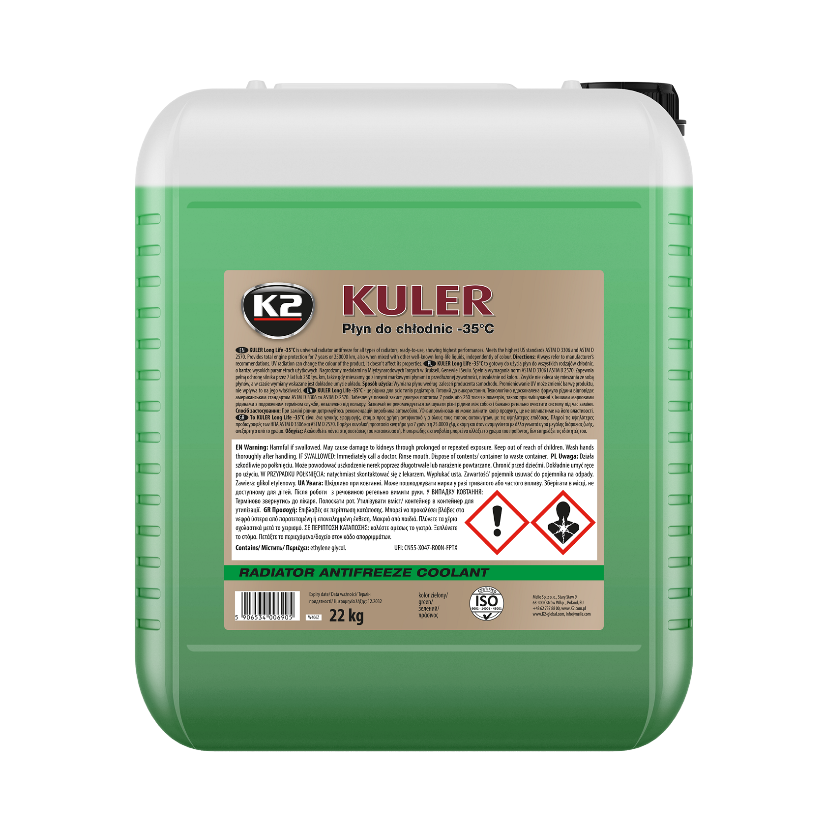 K2 Kuler -35°C to nowoczesny, uniwersalny, gotowy do użycia płyn chłodniczy, który cechuje się bardzo wysokimi parametrami użytkowymi. Ten innowacyjny produkt został nagrodzony złotymi medalami na Międzynarodowych Targach Wynalazków w Brukseli, Genewie i Seulu.