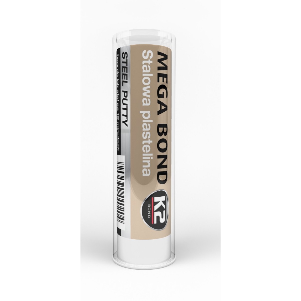 Masa naprawcza do metalu K2 Mega Bond może być szlifowana, wiercona, gwintowana, malowana. Stalowa plastelina zaczyna wiązać już po 3-5 minutach, utwardza się po 15 minutach, pełną wytrzymałość osiąga po 24h.