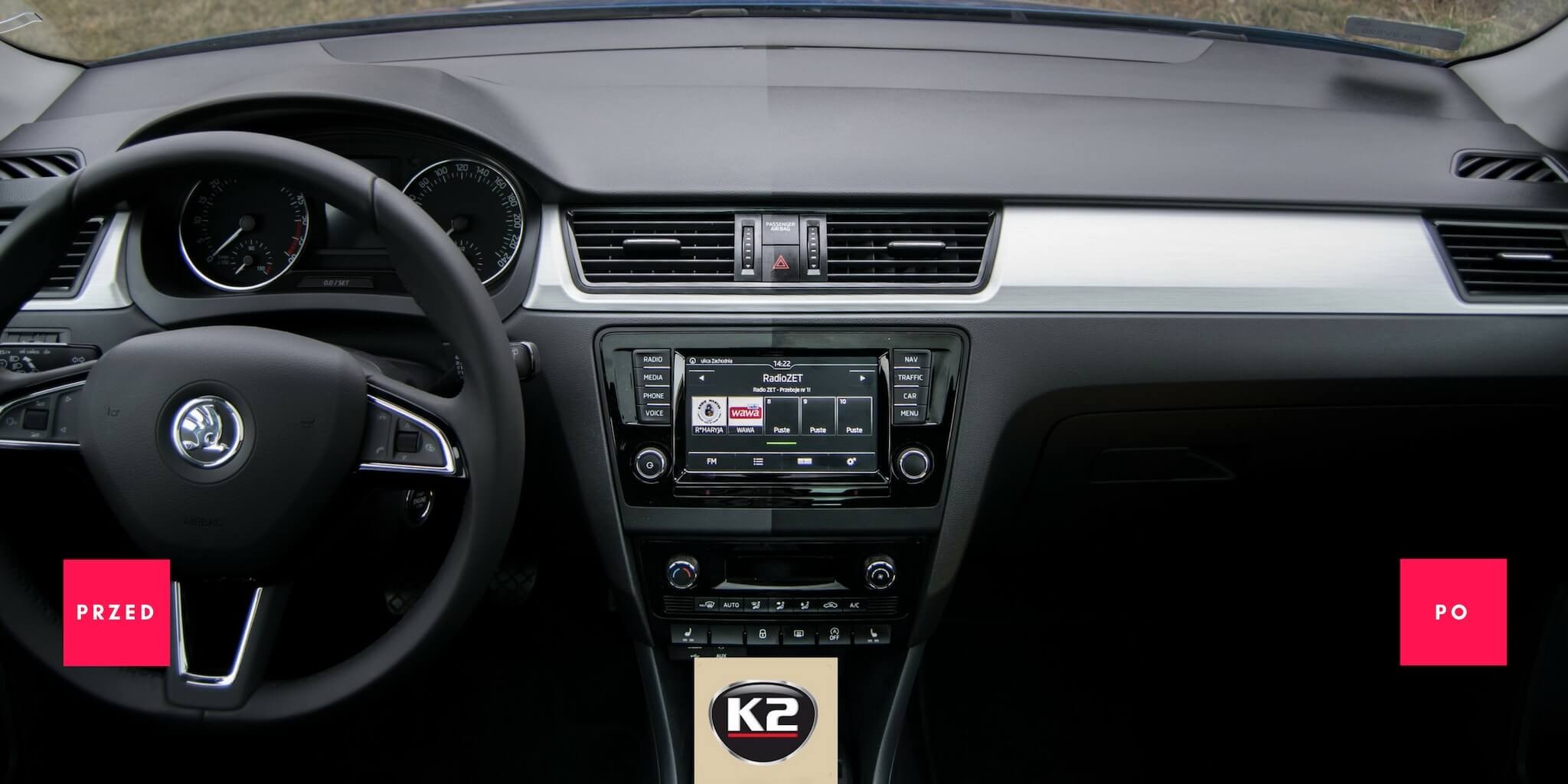 K2 OMEGA nadaje połysk, podkreśla strukturę i wydobywa oryginalny kolor tworzywa. Innowacyjna formuła produktu zapewniadługotrwały efekt, skuteczną ochronę przed promieniowaniem UV dzięki właściwościom antystatycznym na długo chroni przed ponownym osadzaniem się kurzu. Pozostawia przyjemny zapach i lśniącą powierzchnię, która sprawia, że czyszczone elementy wyglądają jak nowe.