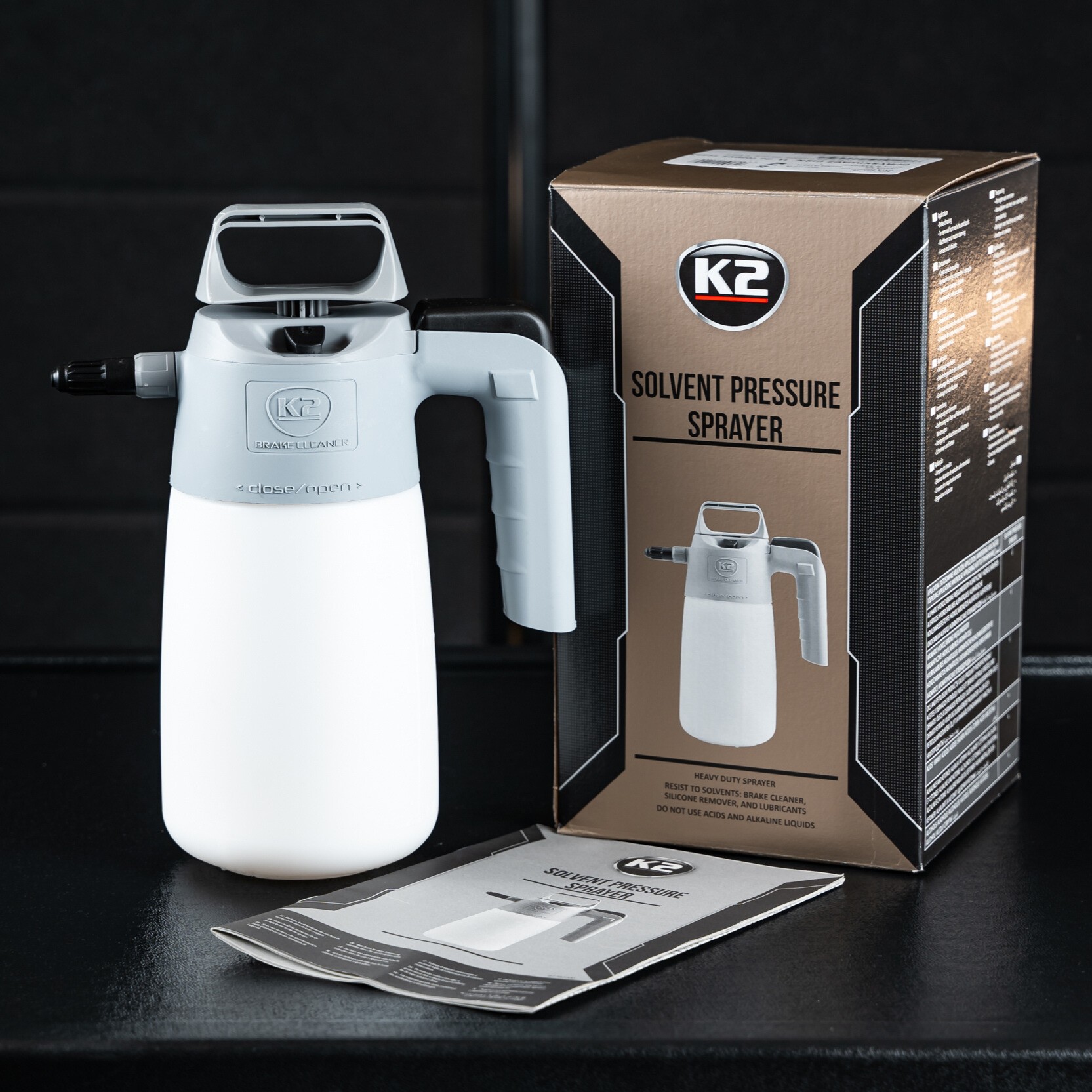 Przemysłowy opryskiwacz wyprodukowany z wysoce odpornych materiałów do użytku z olejami roślinnymi i zwierzęcymi, rozpuszczalnikami na bazie weglowodorów, smarami, produktami ropopochodnymi, w celu: czyszczenia hamulców, usuwania smoły z karoserii samochodowych i narzędzi, czyszczenia maszyn i silników, nakładania smarów, itp. Nie zaleca się stosowania z kwasami, alkaliami i ketonami, alkoholem.