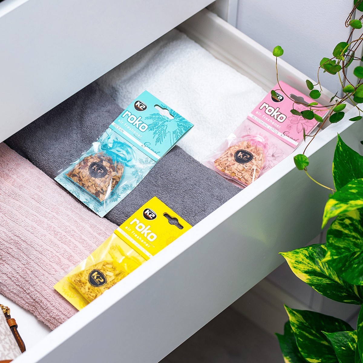 Zapach do samochodu w woreczku K2 Roko dzięki swej formie mogą być stosowane we wszystkich rodzajach
