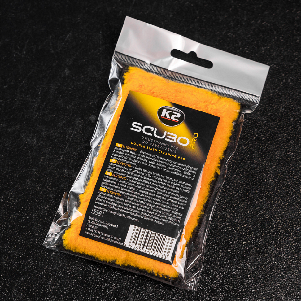 K2 SCUBO PRO to kompaktowy, dwustronny pad czyszczący, który skutecznie usuwa zabrudzenia i jednocześnie dba o delikatne powierzchnie. Biała strona z sztywniejszym włosiem rozbija uporczywy brud, natomiast żółta strona z grubą mikrofibrą doskonale zbiera wilgoć i bezpiecznie doczyszcza powierzchnię bez ryzyka zarysowań.
