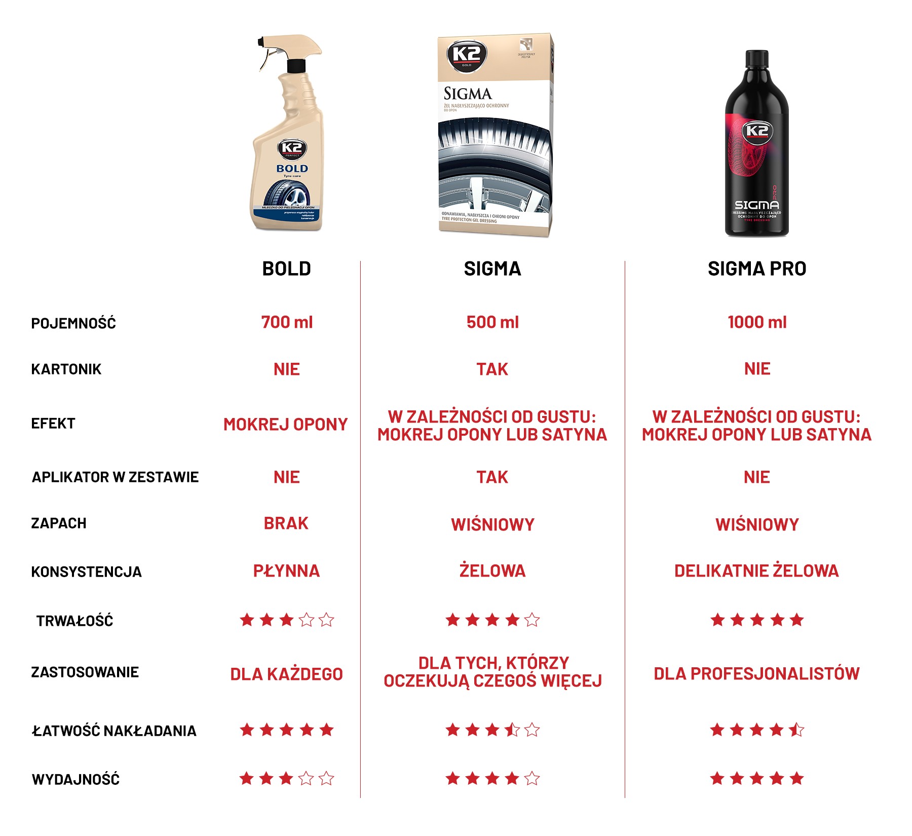 K2 SIGMA PRO – nabłyszczanie i ochrona, ochrona i nabłyszczanie – niebanalne, połączenie idealne. Mix szlachetnych olejków, syntetycznych polimerów i składników odżywiających, skomponowanych w tercet mistrzów, by nadać nieziemski połysk i niespotykanie głęboką, bezkresną czerń – efekt mokrej opony.