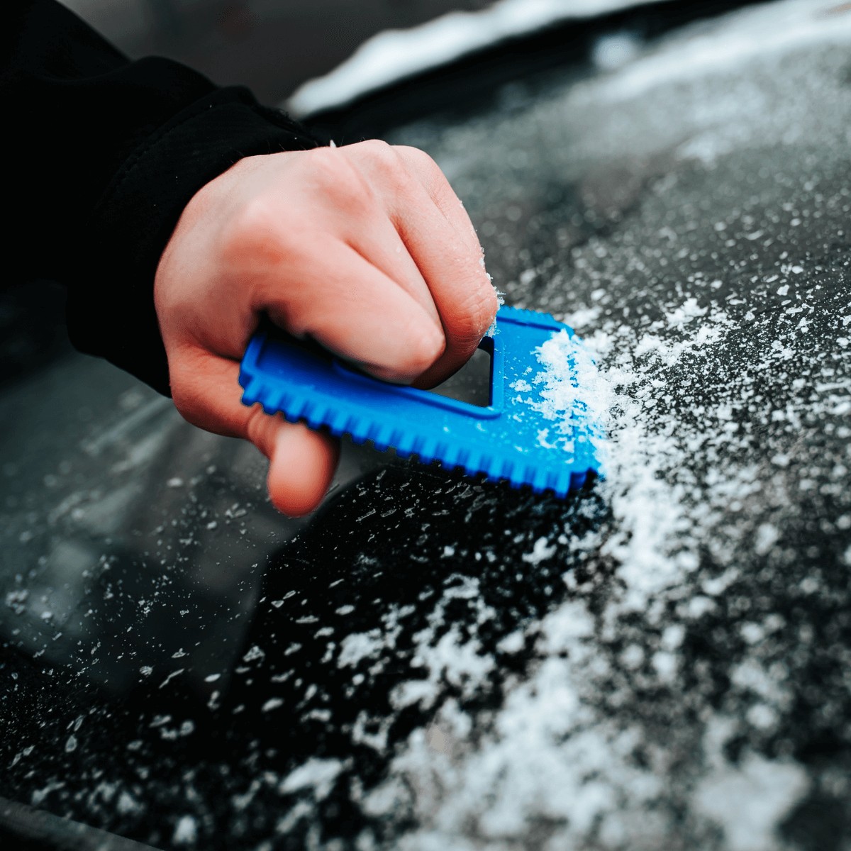 Wygodny przyrząd do usuwania śniegu, szronu i lodu z powierzchni szyb oraz reflektorów w samochodach.