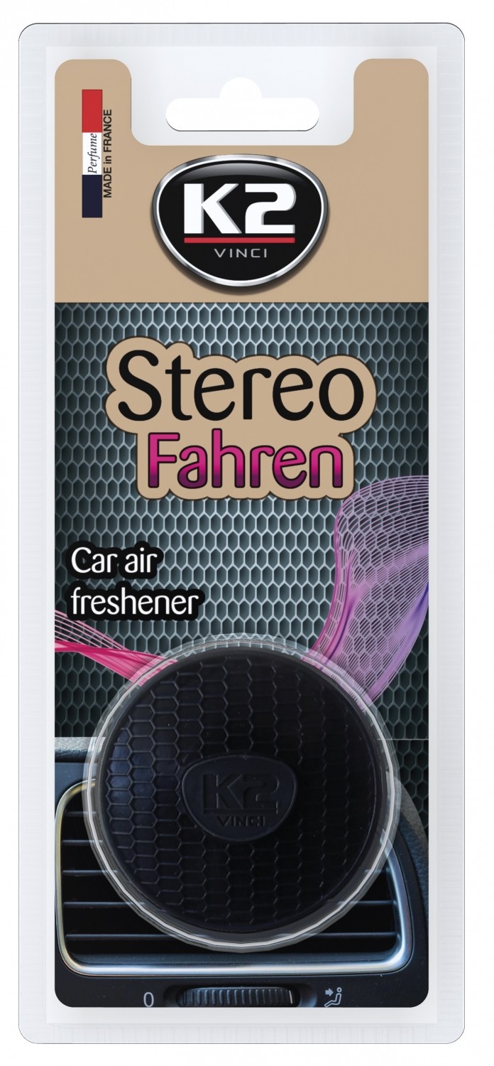 K2 Stereo to zapach do samochodu odświeżacz powietrza w kształcie głośniczka dostępny w 8 popularnych aromatyzacjach: vanilla, green apple, ocean, greem tea, fahren, arctic, strawberry oraz lemon.
