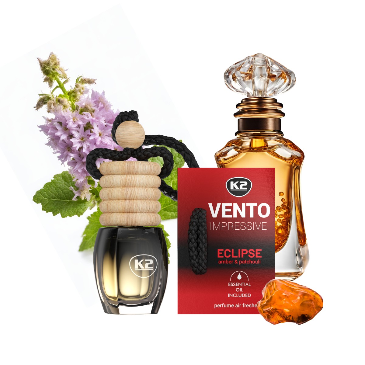 Perfumowane kompozycje zapachowe K2 Vento Impressive błyszczą zapachem niczym samochodowa biżuteria, a odświeżacz zdobi wnętrze auta.