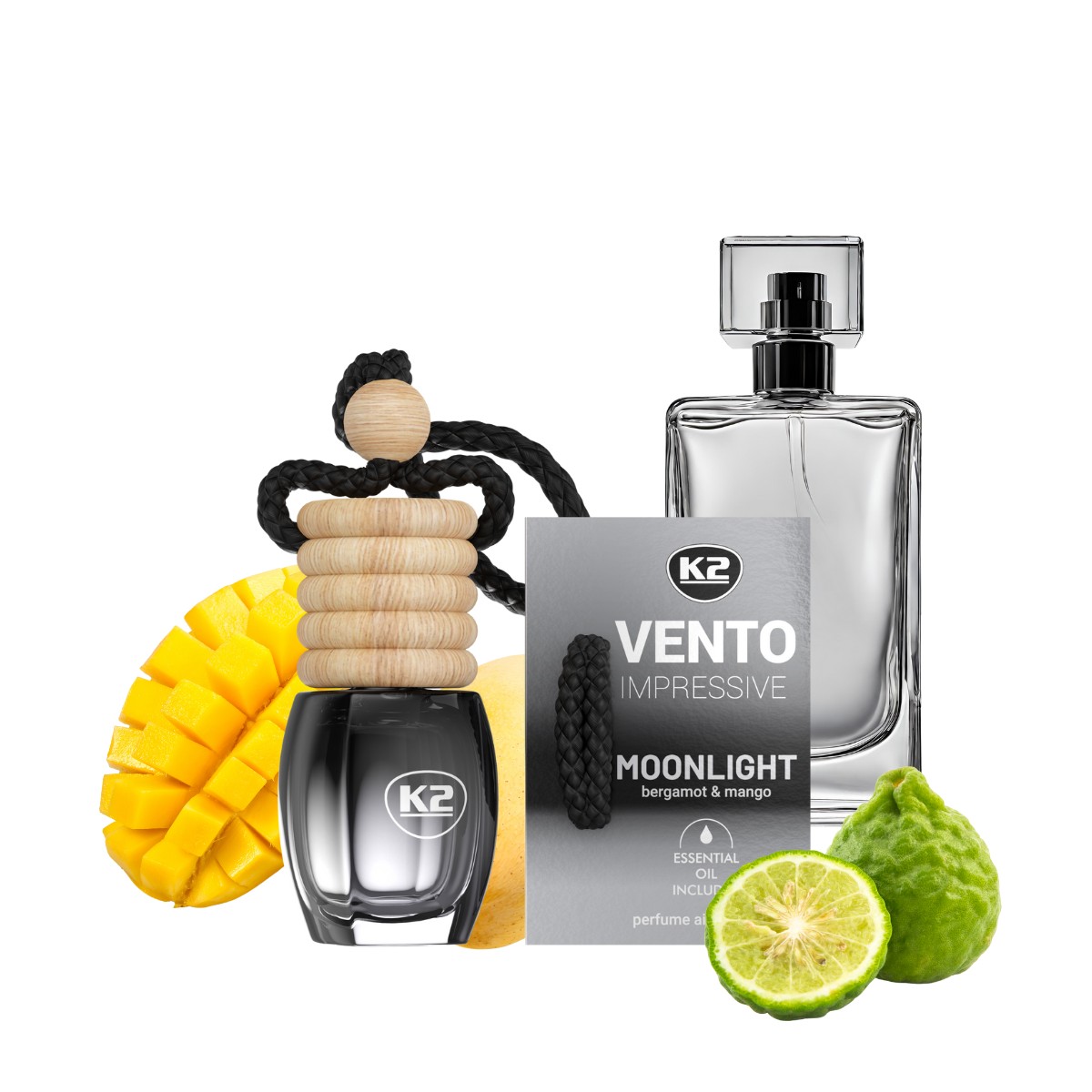 Perfumowane kompozycje zapachowe K2 Vento Impressive błyszczą zapachem niczym samochodowa biżuteria, a odświeżacz zdobi wnętrze auta.