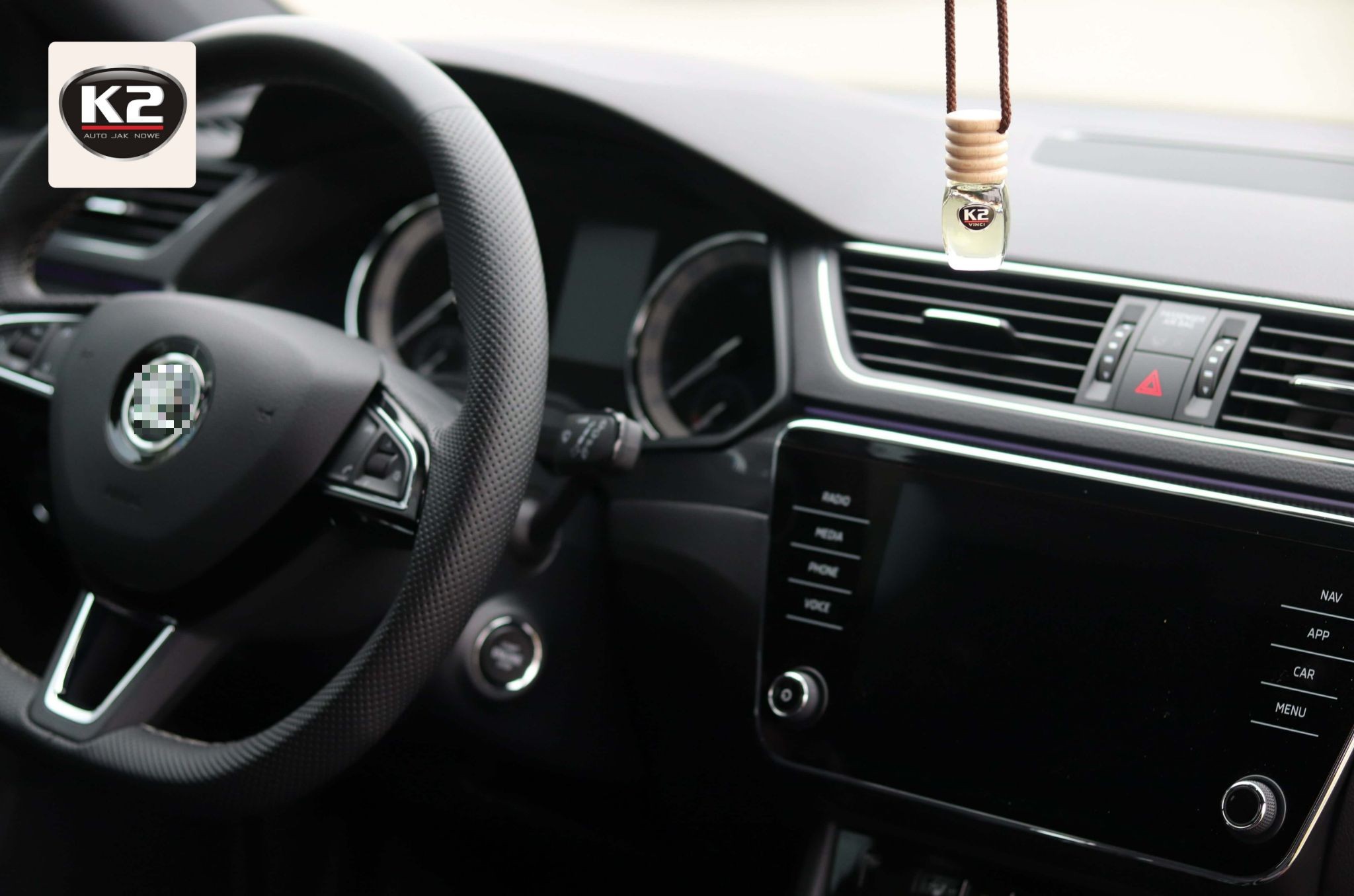 K2 Vento to elegancki odświeżacz powietrza do samochodu o nowoczesnym designie i funkcjonalnym mocowaniu.