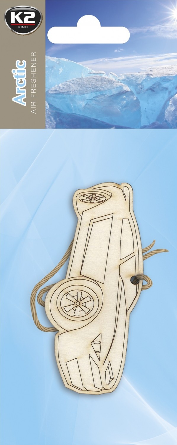 Samochodowy odświeżacz powietrza w formie drewnianej zawieszki w kształcie auta. Nasączone aromatem drewno stopniowo uwalnia przyjemną woń do wnętrza auta. Zmysł powonienia pobudza świeży zapach Arctic.