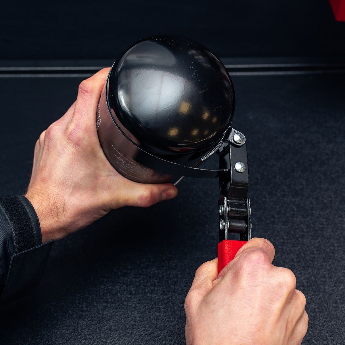 Profesjonalny klucz do odkręcania filtra oleju. Stalowa opaska zaciskowa posiada