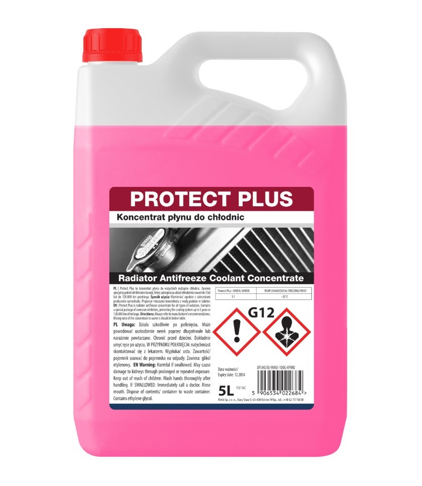 Protect Plus to wysokiej jakości koncentrat płynu chłodniczego przeznaczony do wszystkich rodzajów chłodnic. Zawiera specjalny pakiet inhibitorów korozji, który skutecznie chroni układ chłodzenia nawet do 5 lat lub 120 000 km przebiegu. Produkt zabezpiecza przed przegrzewaniem, korozją oraz powstawaniem osadów, wydłużając żywotność całego układu.