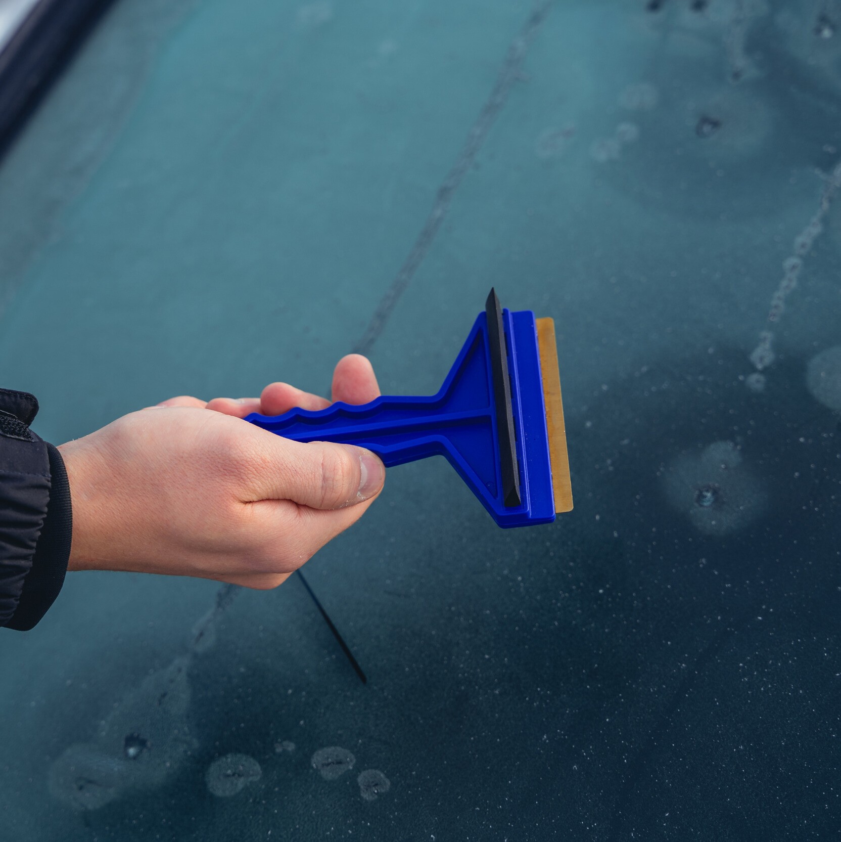 Wysokiej jakości skrobacza do szyb z mosiężnym ostrzem. W pełni bezpieczna, skutecznie usuwa lód z powierzchni